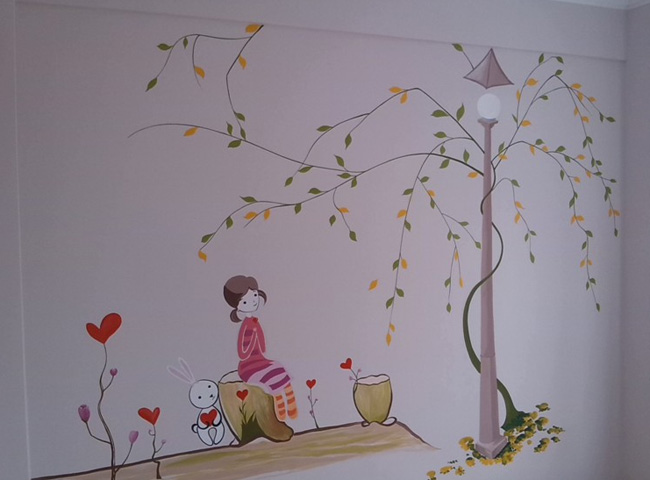 墙体彩绘也是有着非常多的分类的,比如家装的花卉墙绘、卡通墙绘、动漫墙绘等等,而今天妙笔生花小编为大家讲的则是简约墙绘了!