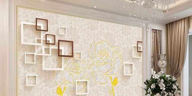 最后来看这幅!这幅简约墙绘图案所用的手法为工笔画的范畴,用金色的简单的线条勾勒出两朵玫瑰,画在电视背景墙上,当你看电视的时候就能够看到它,甚至还能够为你们的爱情保鲜,怎么样,是不是简约而不简单呢?
