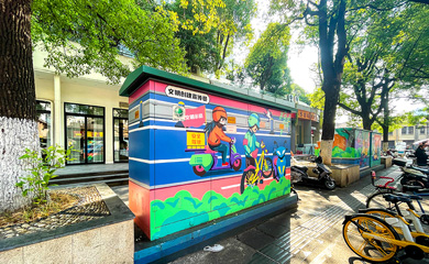 这次彩绘的主体是水泥厂里一幢大楼的外墙和三个大小不一的大铁罐。楼体的墙体经历过风霜日晒的岁月洗礼,显得老旧斑驳。我们在楼体的四周墙面设计了一面风景画:蓝天白云远山,天空之下是一片一望无际的金黄色的油菜田。三个大小不一的铁罐,我们做...