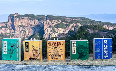 景区里的水泥墩本身是建设时期用到的,但是游客看到就会觉得很奇怪。那就改造一下吧!这种扁平的造型,一般是现有根据造型去思考,比如一本书,扑克牌,麻将,一个盒子,一个画框,等等。从互动性的角度,最后做成一套武侠书,在这南天顶山巅之处,...