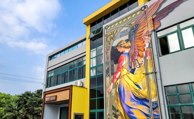 这幅天使绘画原作在梵蒂冈,是天顶画两侧的其中一幅,我们被天使的色彩打动,造型也非常优美,把她作为画面的主体,边框采用了穆夏的装饰性植物花纹。因为位于时亦智慧园,所以我们也把这幅画称为—智慧天使,可以看到天使手中的权杖已...